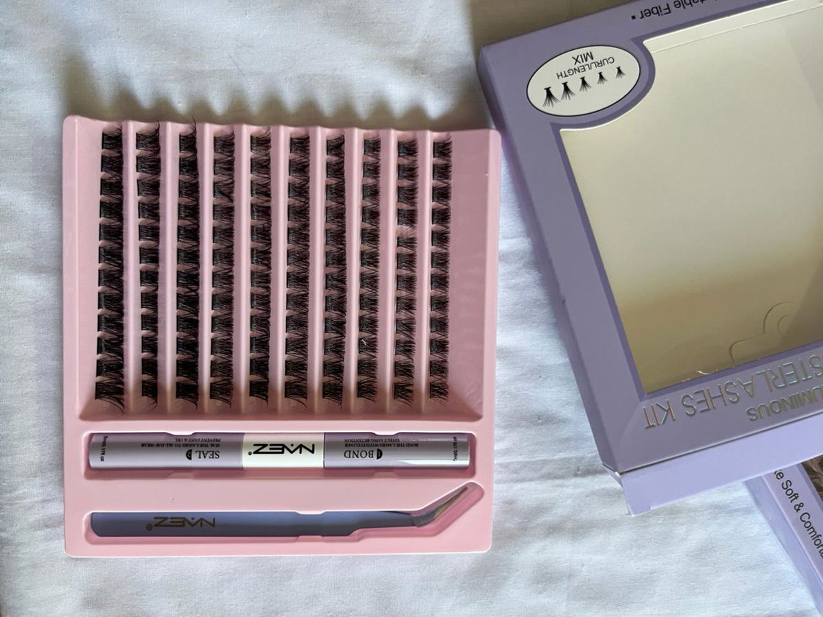 Incluye pestañas, pegamento y pinzas